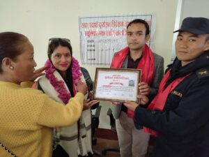 सुर्योद्रय नगरपालिकाको एक विशेष कार्यक्रममा सुजना रिजाल सम्मानित